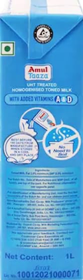 Amul Taaza Homogenised Toned Milk 1L Unique