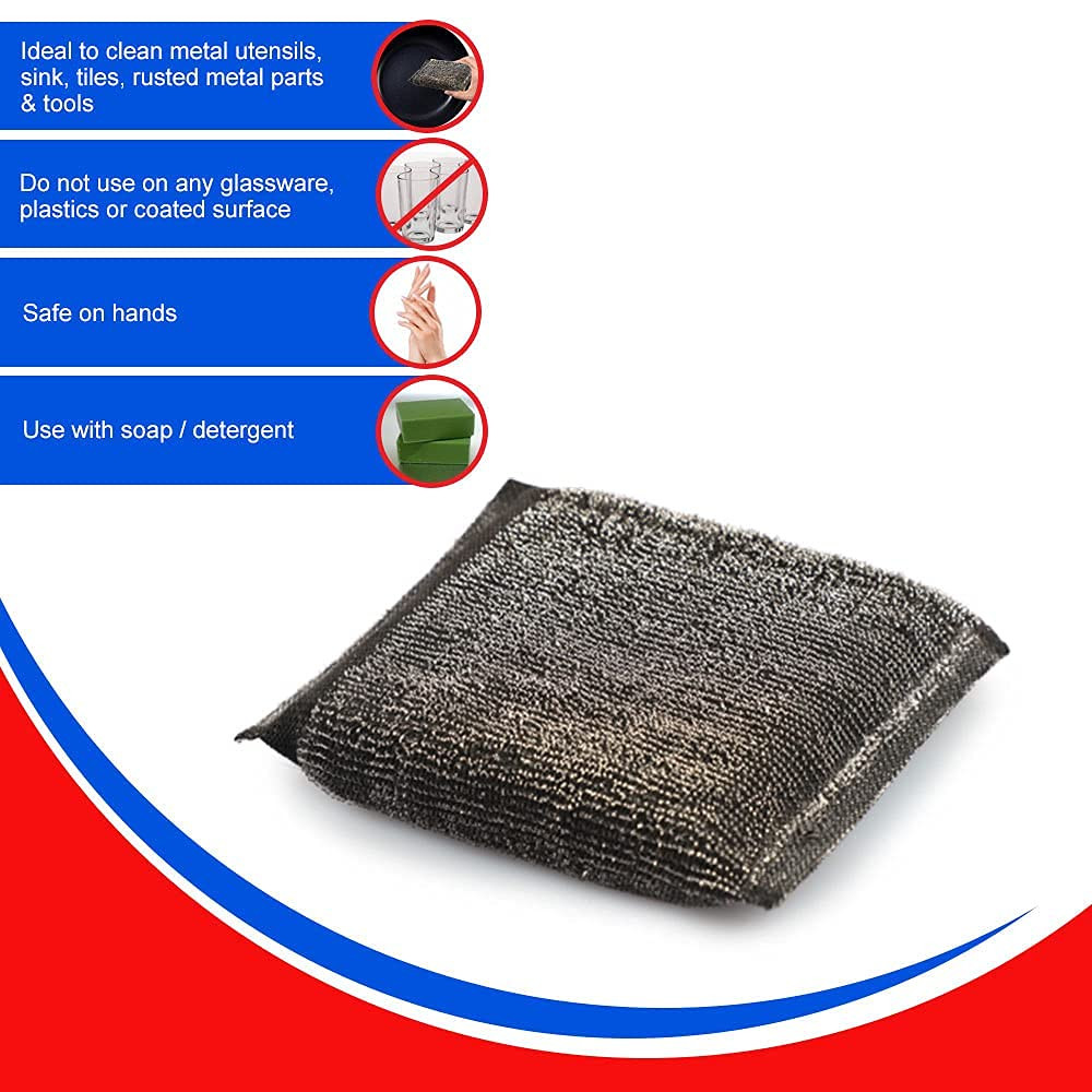 Steel Foam Pad Sponge Scourer Kitchen Scrubber Suitable for Dish/Utensils/Tiles, WashBasin (Black Color) Scrub Sponge 3 Times Better Than Regular Sponge pad (Pack of 6)